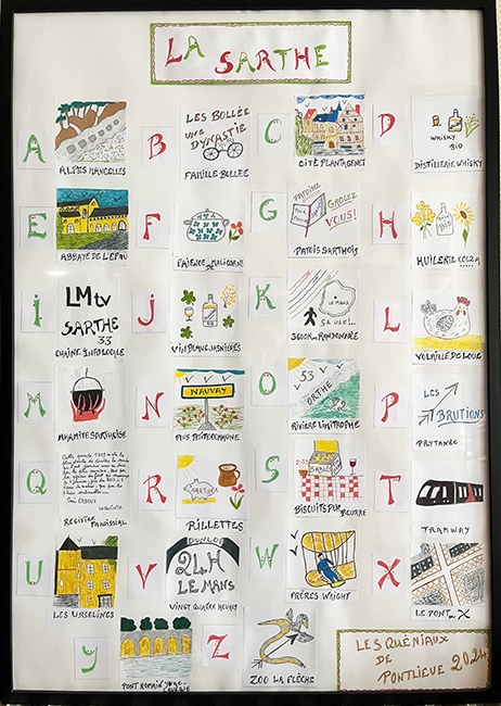 Cette exposition créée sous la forme d'un abécédaire est consacrée à la Sarthe. Réalisé par les résidents de la structure de Caroline, il est mis à disposition pour les structures du département et pour les autres la fiche animateur et un fichier Word vous permettra de créer votre propre abécédaire.
