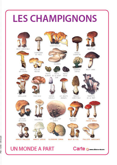 Ces cartes illustrées et commentées vous permettront de discuter autour de la récolte des champignons en ayant des informations complémentaires sur leur rôle, leur aspect scientifique, culinaire ainsi que leur impact sur la nature et le corps humain.