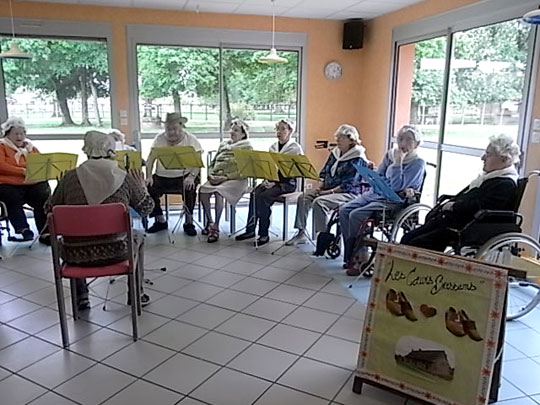 Gloria a mis son stage Bejeps à profit pour créer une chorale au sein de l’Ehpad Charles Borgeot à Pierre-de-Bresse. Les résidents souhaitaient donner de la voix, Gloria leur a permis de se structurer autour d’une chorale et en organisant des répétitions qui ont débouché sur les premières représentations.