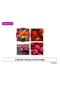 Ce contenu, créé sous la forme d’un diaporama, permet de jouer à trouver l’élément intrus. Sur le thème des animaux et des fruits et légumes, sur chaque diapo apparaît 4 images dont une est différente des autres. Le niveau de difficultés est variable selon les propositions allant de 3 photos montrant des chiens et une un chat jusqu’à 3 animaux qui se déplacent en sautant et un qui marche sur ses 4 pattes.