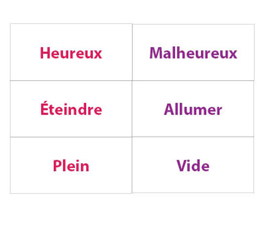 Jeu intéressant, il permet de faire travailler la mémoire des résidents, et à la fin nous avons essayé de trouver d’autres contraires pour les ajouter au jeu.