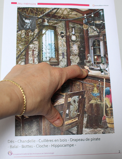 Christine partage ici 19 images pour un atelier concentration. Ces images représentent des pièces contenant de nombreux objets plus ou moins dissimulés. Le but, retrouver l'objet demandé. Avoir ainsi le bon coup d'œil pour dénicher des objets souvent loin de notre quotidien (batte de cricket, gramophone...). Ne convient pas pour les personnes ayant des problèmes de vue.