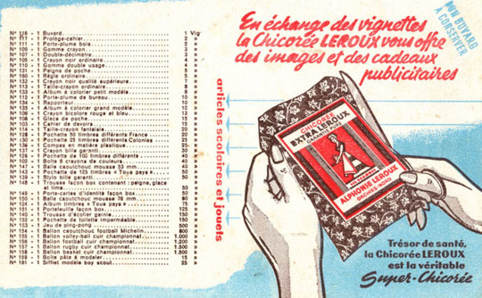 Qui n’a pas acheté une lessive ou un produit pour le cadeau caché à l’intérieur ! Retrouvez ici sous forme de diaporama à projeter ou à imprimer l’origine des cadeaux publicitaires qui ont marqué le quotidien des résidents. Du cadeau Bonux aux gadgets dans les revues pour enfants en passant par les objets reçus grâce aux vignettes de chocolat ou de café, les images recensées ici permettent d’alimenter un atelier discussion autour de ce thème. N'oubliez pas de "dezipper" le diaporama avant de le lancer.