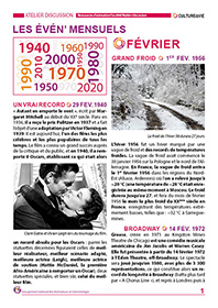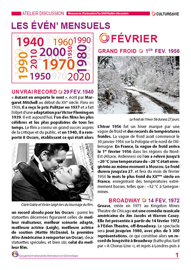 Ce contenu revient sur des événements qui se sont passés pendant les mois de février entre 1940 et 2020. Des événements pour lancer des débats et pour inviter les résidents de vos établissements à partager leurs souvenirs. Les résidents pourront laisser un écrit en dernière page sur un fait qui ne figure pas au contenu ou un témoignage sur un événement abordé.