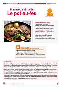 Carottes, navets, poireaux, os à moelle… tous ces ingrédients ont été familiers des aînés durant leur activité à la maison et la majorité des personnes connaît les ingrédients qui compose le pot- au-feu. A travers ce quiz ingrédients qui est créé pour une activité individuelle, l’aîné pourra sur papier à l’aide de case à cocher, recréer sa recette de pot-au-feu (bonne ou mauvaise peu importe) et se laisser aller à partager ses souvenirs d’ambiance de cuisine, d’odeurs, de repas en famille…