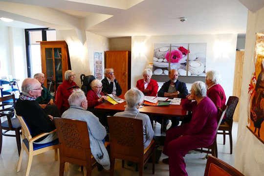 Suite à la demande d’un certain nombre de résidents d’échanger sur des sujets de réflexion, Yannick, aidé par un professeur de philosophie et des publications dédiées, organise chaque mois des échanges à thèmes. Il explique ici comment il pratique et comment chacun, à son niveau, trouve plaisir à participer à ses discussions.