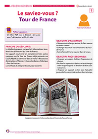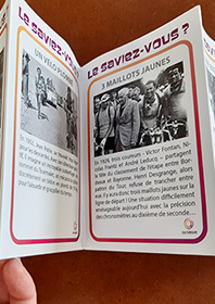 A l’occasion du Tour de France, découvrez à travers ce dépliant 8 informations liées à cette actualité. Des petites tricheries aux exploits d’Eugène Christophe en passant par des boissons peu orthodoxes, les différentes informations traitées seront l’occasion d’échanger autour de cet événement national annuel bien connu de tous.