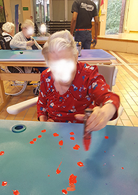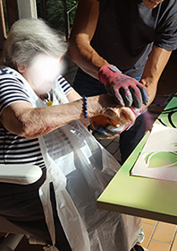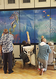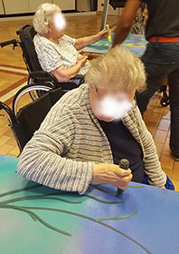 Antoine détaille dans cette fiche projet d’animation comment il a décoré l’espace de la salle commune avec les résidents en utilisant la technique du graffiti. Epaulés par un professionnel les aînés ont pu, chacun selon leurs capacités motrices ou artistiques, intervenir sur leur espace de vie et ainsi mieux se l’approprier tout en se familiarisant avec une nouvelle technique artistique.