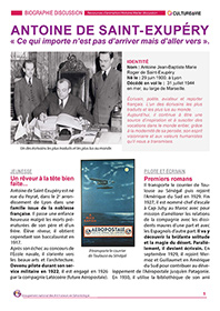 En juin 1900 naissait à Lyon Antoine de Saint-Exupéry. L’occasion pour nous de revenir sur le parcours de cet homme exceptionnel qui a laissé derrière lui des œuvres incontournables de la littérature française comme « Le petit Prince ». Ce support permet de mettre en place un atelier-discussion très visuel à l’aide d’une biographie de l’auteur associée à 20 cartes qui retracent les grands événements de sa vie et de son travail à afficher sur une frise chronologique pour mieux visualiser l’évolution de sa carrière.