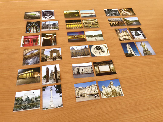 Ce contenu comporte 2 séries de 16 images. Réalisé sur le thème de Bordeaux, l’objectif est d’associer un monument ou un objet à un lieu. Un bon moyen de partager ses souvenirs de visites ou de découvrir les lieux emblématiques de cette ville Bordelaise.