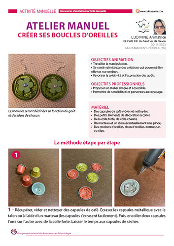 Ludivine propose une fiche méthode détaillée pour réaliser des bijoux d’oreilles à partir de matériel recyclé. Simple et rapide, ces réalisations permettront à chacun d’exprimer sa créativité et d’obtenir des objets à offrir ou à vendre.
