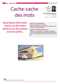 Guillaume propose ici deux textes d'auteurs connus dans lesquels se caches des mots liés aux fleurs et aux couleurs. En imprimant les deux textes qui sont écrits en gros caractères, vous pouvez les laisser aux résidents dans leur chambre pour un moment de détente autour du jeu et des mots.