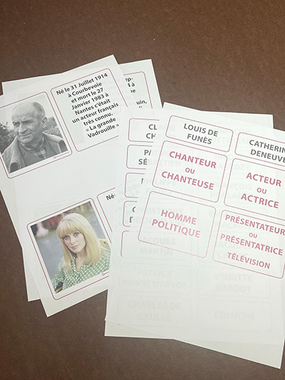 Ce jeu regroupe 30 cartes de célébrités issues des domaines de la télévision, du monde politique, de la chanson et du cinéma. Pour chacune d’elle une définition permet de trouver le personnage et de le classer dans sa catégorie en lui attribuant le bon nom.