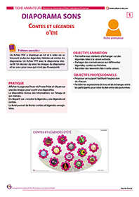Réalisé à partir de « fleurs interactives », vous pouvez découvrir les contes, histoires et légendes en lien avec l’été grâce à des boutons interactifs. Les légendes sont sonores et retranscrites dans un livret à imprimer. Les établissements qui ne possèdent pas Powerpoint pourront visionner le contenu en cliquant sur le lien ci-dessous afin d’installer la visionneuse gratuite.