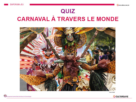 A partir des cartes sur les Carnavals dans le monde, voici un quiz permettant de retrouver certaines informations et de faire travailler sa mémoire de manière ludique. Les cartes des Carnavals du monde sont à retrouver dans le Menu Ressources d’animation/Fêtes calendaires/Carnaval N'oubliez pas de "dezipper" le diaporama avant de le lancer.