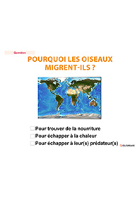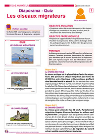 Ce support d’animation à destination des personnes âgées est créé sous forme d’un diaporama comporte au total 25 questions relatives aux oiseaux migrateurs. La fiche animateur liée permet d’avoir plus de détails sur la migration de chaque oiseau.