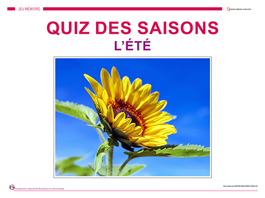 Nelly propose une série de diaporamas quiz sur les saisons. Voici celui sur l’été. Créé sous la forme d’un quiz, ce support d’animation à destination des personnes âgées comporte les réponses derrière chaque question.