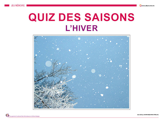 Nelly propose une série de diaporamas quiz sur les saisons. Voici l’un d’entre eux sur l’hiver. Créé sous la forme d’un quiz, ce support d’animation à destination des personnes âgées comporte les réponses derrière chaque question.