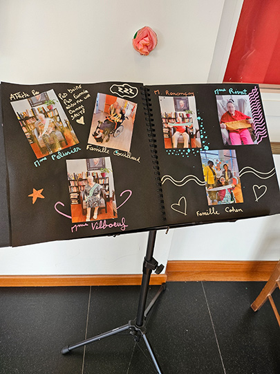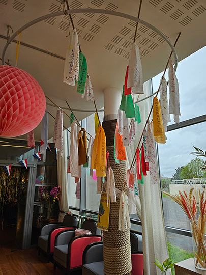 Bonjour, magnifique projet qui me donne l'idée de le faire en inter- générationnel avec une école qui vient en Octobre. Nous pourrons découper en avant les rubans avec les résidents et le jour J chaque participant pourra inscrire ce qu'il ressent sur se partage entre génération. A se rencontrer au congrès. Merci . Fabienne