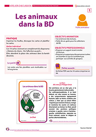 Ce diaporama est accompagné de sa fiche animateur. Il permet d’évoquer l’évolution du chien, de son intérêt pour l’homme, de l’évolution des races, des dérives humaines à son encontre... Ce contenu est complété avec des cartes représentant les animaux dans la bande dessinée. Des cartes à distribuer aux résidents qui ont le goût de la lecture et plus précisément pour la bande dessinée.
