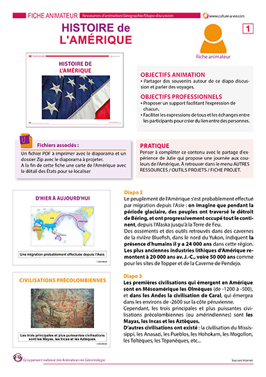 Violette partage un support d’animation pour faire voyager les résidents tout en approfondissant leurs connaissances sur un pays, ici l’Amérique. Colonisation, appellations, personnalités liées à la conquête de l'Ouest, sont autant de discussions pour s’évader un instant au pays du Far West.