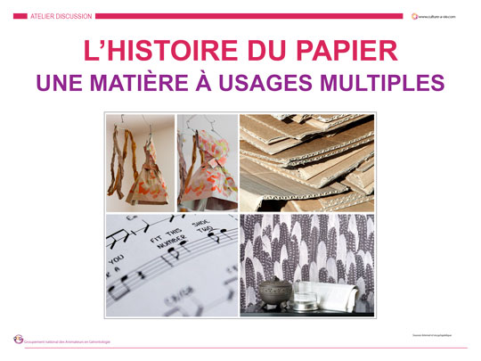 De son invention à sa production industrielle, ce diaporama permet de voir toutes les étapes de l’histoire du papier jusqu’à ses différentes utilisations dans notre quotidien. N’oubliez pas de « dézipper » le diaporama avant de le projeter en faisant un clic droit « Extraire tout »