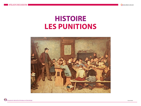 Ce diaporama est accompagné de sa fiche animateur. Le diaporama retrace une époque révolue qui comprenait des punitions corporelles, à l’école ou à la maison. Celui-ci permettra d’échanger sur un sujet qui aujourd’hui encore, peut-être tabou. Il s’agit également de se rendre compte des différences d’il y a environ 100 ans et aujourd’hui.