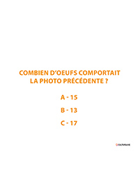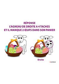Ce diaporama est un jeu d’observation sur le thème de Pâques et est adapté à des personnes présentant des troubles cognitifs de type Alzheimer. Des images d’œufs et d’agneaux colorés sur le thème de Pâques sont ici proposées. Laisser suffisamment de temps à chaque diapo intitulée « OBSERVER » afin que les résidents s’imprègnent au mieux du visuel avant de passer à la diapo suivante qui soumet une question en lien avec l’image « OBSERVER ». Chaque réponse est donnée à la suite de la question.