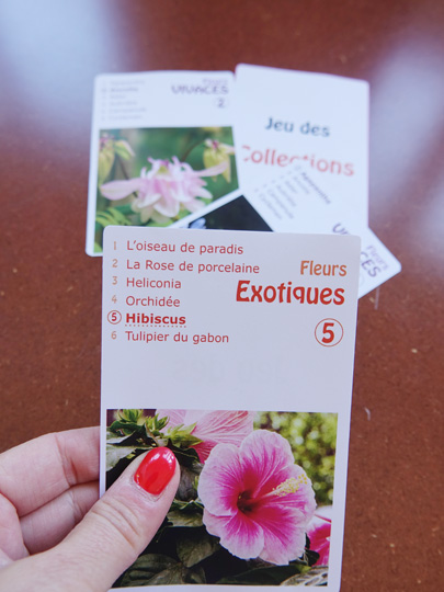 Construit sur la règle du jeu de 7 familles, ce jeu de cartes a pour thème les variétés de fleurs. Les fleurs vivaces, de montagne, de fruitiers, de prairie, d’ornement, d’eau et exotiques ont ainsi 6 cartes représentant 6 fleurs de leur catégorie qu’il faut regrouper dans son jeu.