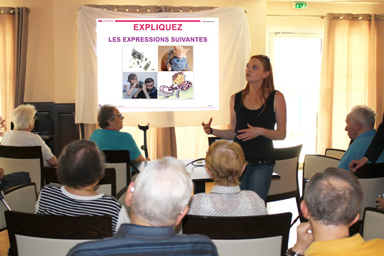 Catherine partage deux diaporamas qu’elle a créé autour d’expressions très connues. Le premier intitulé « signification expression » consiste à retrouver le sens des expressions proposées (ex : jeter l’argent par la fenêtre). L’origine de chaque expression est mentionnée dans la fiche animateur pour donner des informations complémentaires. Le second diaporama donne le début d’une expression à compléter à l’aide de deux propositions. Une version à imprimer a été créée pour ceux qui souhaite réaliser le jeu en individuel ou par écrit. N’oubliez pas de « dezipper » le diaporama avant de le projeter en faisant un clic droit « Extraire tout »