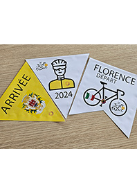 Composez une décoration pour célébrer le Tour de France 2024 ! 18 fanions à découper et coller sur du fil ou de la laine, à suspendre dans les lieux de passage de l’établissement et/ou dans les chambres des personnes amatrices de cyclisme. Une façon originale de rester au contact de la grande boucle qui prend cette fois départ à Florence en Italie pour une arrivée à Nice (JO obligent).