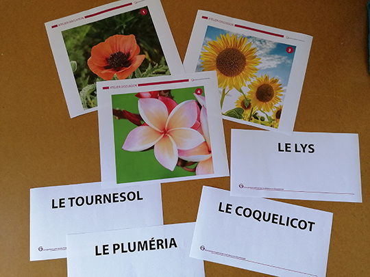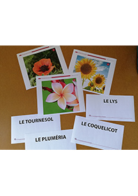 Marine propose un jeu pour découvrir ou redécouvrir des fleurs. Une douzaine de fleurs sont proposées ainsi que le nom de chacune. Le jeu consiste à assembler le nom avec la fleur qui lui correspond.
