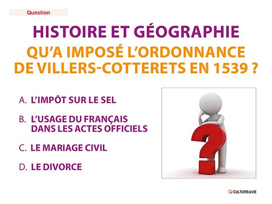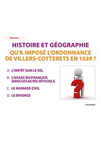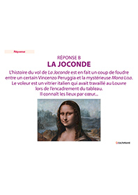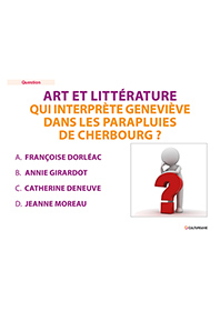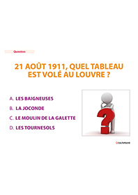 Virginie propose un support d’animation sous la forme d’un diaporama-quiz. Elle propose de nombreuses questions organisées autour de plusieurs thèmes : « Histoire-Géographie », « Art et Littérature », « Science et Technique ». A chaque question succède sa réponse.