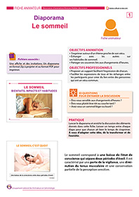 Ce support d’animation est proposé sous la forme d’un diaporama pour animer un atelier-discussion autour du changement d’heure. En partant des différentes phases du sommeil, des études concernant les temps de sommeil au fil de la vie, des ronflements et autres rêves, ce support permet de voir également les bouleversements occasionnés par le changement d'heure et son impact sur notre sommeil. Penser à « dezipper » le diaporama avant de le projeter en faisant un clic droit « Extraire tout ».