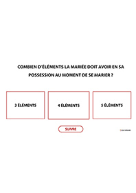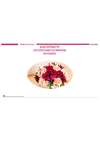Ce quiz interactif sur les coutumes et traditions du mariage en France invite à la discussion autour de 32 diapositives. Pour chaque question posée, des propositions sont données, les personnes devront trouver la bonne réponse. Créé sous forme de QCM, la réponse à chaque question s'affiche en vert en un clic (il faut cliquer sur les réponses proposées pour découvrir la bonne réponse qui s'affiche en vert). Ce quiz apportera des connaissances supplémentaires ou complémentaires à chacun.