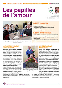 Ce projet a reçu le 3e prix des Anim’Awards du Congrès national de l’animation et de l’accompagnement en gérontologie 2019. Sylvie explique ici comment l’établissement où elle travaille a décidé de prendre en compte les résidents encore en couples en leur dédiant un moment privilégié. A l’occasion de la Saint-Valentin, la salle d’activités s’est donc transformée en salle de restaurant pour une quinzaine de couples qui ont pu retrouver le plaisir de partager un bon repas en tête à tête.