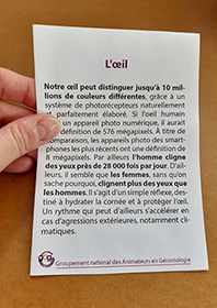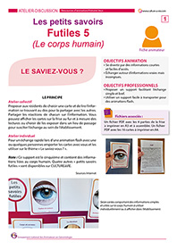 16 cartes proposent des petites informations simples et insolites pour passer un moment d’échanges autour de sujets légers. Le sujet de cette déclinaison 5 des Petits savoirs futiles est le corps humain. Des informations vraies mais insolites sur des cartes à partager en animation individuelle ou collective.