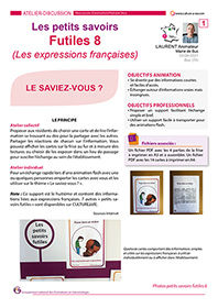 14 cartes proposent des petites informations simples et ludiques pour passer un moment d’échanges autour de la langue française. Des informations sur des cartes à partager en animation individuelle ou collective. Un support de frise pour installer les cartes peuvent transformer cette animation pour personnes âgées en exposition.