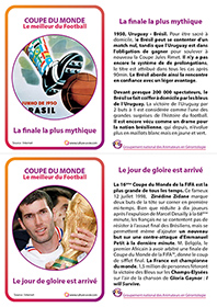 14 cartes proposent des petites informations simples et ludiques pour passer un moment d’échanges autour de la Coupe du Monde de Football. Des informations sur des cartes à partager en animation individuelle ou collective. Un support de frise pour installer les cartes peuvent transformer cette animation pour personnes âgées en exposition.