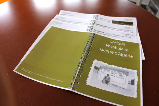 Ce lexique est conçu pour aider les animateurs à mieux comprendre le langage des personnes ayant vécu la guerre. Des termes militaires ainsi que certains termes algériens fréquemment utilisés par les soldats sont ici repris et expliqués.