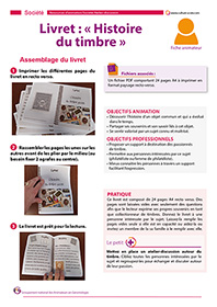 Ce support est composé de 24 pages A4 à imprimer Recto-verso et à assembler pour former un livret de lecture et d’expression. L’histoire du timbre-poste y est détaillée avec des pages laissées libres avec des questions pour inviter les philatélistes ou les femmes de philatélistes à s’exprimer sur leur relation avec cet objet. Ce support peut donc être utilisé dans un premier temps en animation individuelle avant d’être partagé en petit groupe d’amateurs de timbres.