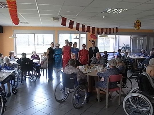Chaque mois Pauline propose une destination différente aux aînés de son établissement à travers un voyage virtuel. A l’occasion du Nouvel an Chinois, elle a ainsi mis en place différentes activités autour de la Chine. Après la projection d’un documentaire sur le pays, les résidents ont pu « tester leurs connaissances » autour d’un quiz avant de déguster un repas typique asiatique.