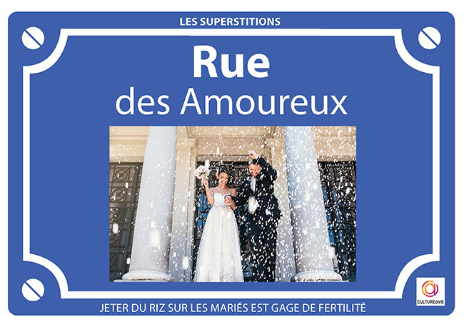 Ces 19 plaques de rues reprennent les superstitions connues ou méconnues de notre quotidien. Elles peuvent être diffusées en atelier-discussion avant d’être affichées dans les couloirs de l’établissement. Une fiche animateur vous permet de détailler l’histoire et la signification de chaque superstition, porteuse de bonheur ou de malheur.