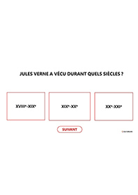 Ce quiz à projeter permettra de retrouver le parcours de vie de ce célèbre écrivain d’une manière interactive ainsi que quelques-unes de ses œuvres majeures. Pour chaque question posée, des propositions sont données, les personnes devront trouver la bonne réponse. Créé sous forme de QCM, la réponse à chaque question s'affiche en vert en un clic (il faut cliquer sur les réponses proposées pour découvrir la bonne réponse qui s'affiche en vert). Ce quiz composé de 27 diapositives apportera des connaissances supplémentaires ou complémentaires à chacun.