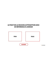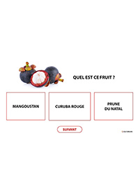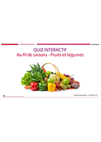 Ce quiz à projeter risque de vous mettre en appétit ! Ada propose de répondre à ce questionnaire sur les fruits et légumes de manière interactive. Pour chaque question posée, des propositions sont données, les personnes devront trouver la bonne réponse. Créé sous forme de QCM, la réponse à chaque question s'affiche en vert en un clic (il faut cliquer sur les réponses proposées pour découvrir la bonne réponse qui s'affiche en vert). Ce quiz composé de 45 diapositives est un mélange d’images, d’expressions et d’informations qui apportera des connaissances supplémentaires ou complémentaires à chacun. Ce diaporama vient en complément d’autres ressources d’animations, que vous pouvez retrouver sur la plateforme CULTUREàVIE (en tapant « fruit et/ou légumes » dans l’espace mot clé). Les établissements qui ne possèdent pas Powerpoint pourront visionner le contenu en cliquant sur le lien ci-dessous afin d’installer la visionneuse gratuite.