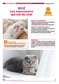Les chats, tout comme les chiens, sont parmi les animaux de compagnie les plus proches de l’homme. Connaissez-vous bien les expressions qui ont du chat ? Retrouvez plus d’une vingtaine d’expressions français autour de cette petite boule de poils dont il faut trouver la signification. Les résidents ont le choix parmi deux réponses possibles à chaque fois… Les solutions sont données en fin de quiz.