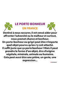 Sandra propose un diaporama quiz pour découvrir ou redécouvrir des porte-bonheur en France et à travers le monde. Chacun pourra se reconnaître dans certaines de ces croyances et/ou partager ses expériences avec un porte-bonheur.