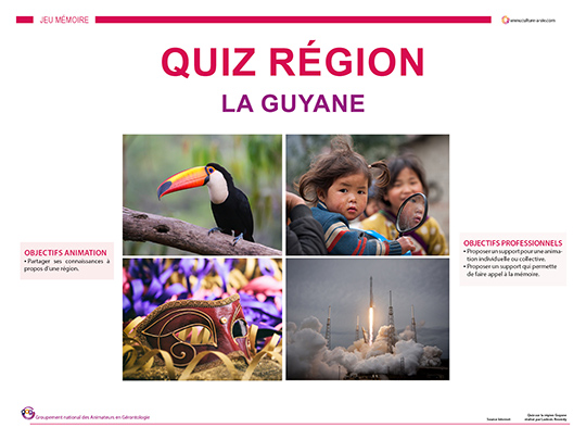 Ludovic propose un diaporama quiz pour découvrir des lieux, des appellations, des personnes qui représentent la région guyanaise. Une vingtaine de questions sont suivies de leurs réponses. Ce quiz fait appel à la mémoire, il permettra aux personnes originaires de la région ou celles qui y ont voyagé d’évoquer leurs souvenirs.