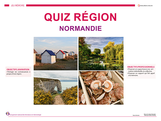 Ludovic propose un diaporama quiz pour découvrir des lieux, des appellations, des personnes qui représentent la région normande. Une trentaine de questions sont suivies de leurs réponses. Ce quiz fait appel à la mémoire, il permettra aux personnes originaires de la région d’évoquer leurs souvenirs.