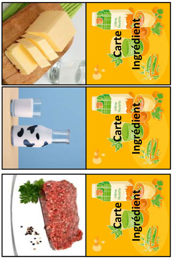 Thomas a créé un jeu permettant à chacun de retrouver les ingrédients contenus dans une recette. A l’aide de supports visuels, un plat est mis au centre de la table. Chaque joueur a dans ses mains plusieurs cartes ingrédients. Selon leurs souvenirs culinaires, les joueurs vont choisir de proposer une ou plusieurs cartes qu’ils estiment entrer dans la recette. Une fois les bons ingrédients trouvés, l’animateur détaille la recette des plats proposés, tous bien connus des résidents.